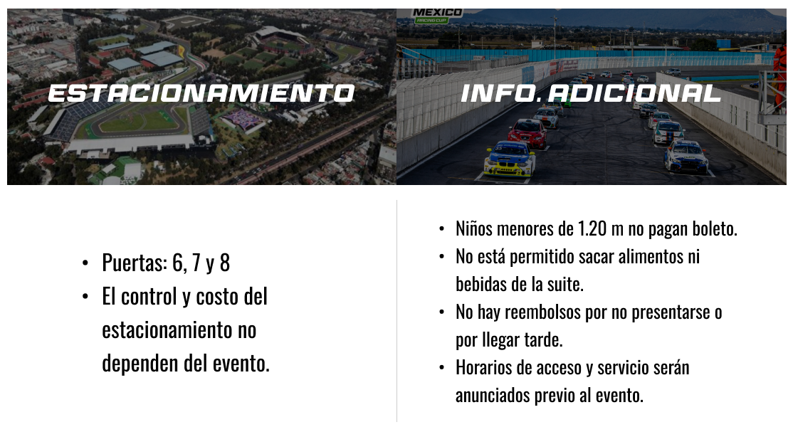Disfruta la carrera desde el mejor lugar del Autódromo Hermanos Rodríguez: comodidad, buena comida y una vista única.