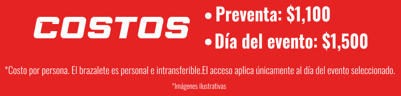 *Costo por persona. El brazalete es personal e intransferible. El acceso aplica únicamente al día del evento seleccionado.